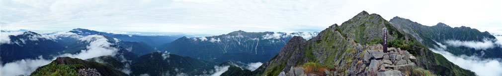 西穂高岳山頂からのパノラマ画像(画像をクリックすると拡大します)