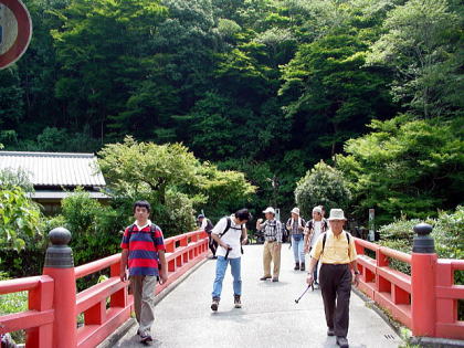 | バスを降りて意気揚々と歩き始める | 清滝川を渡る | ||